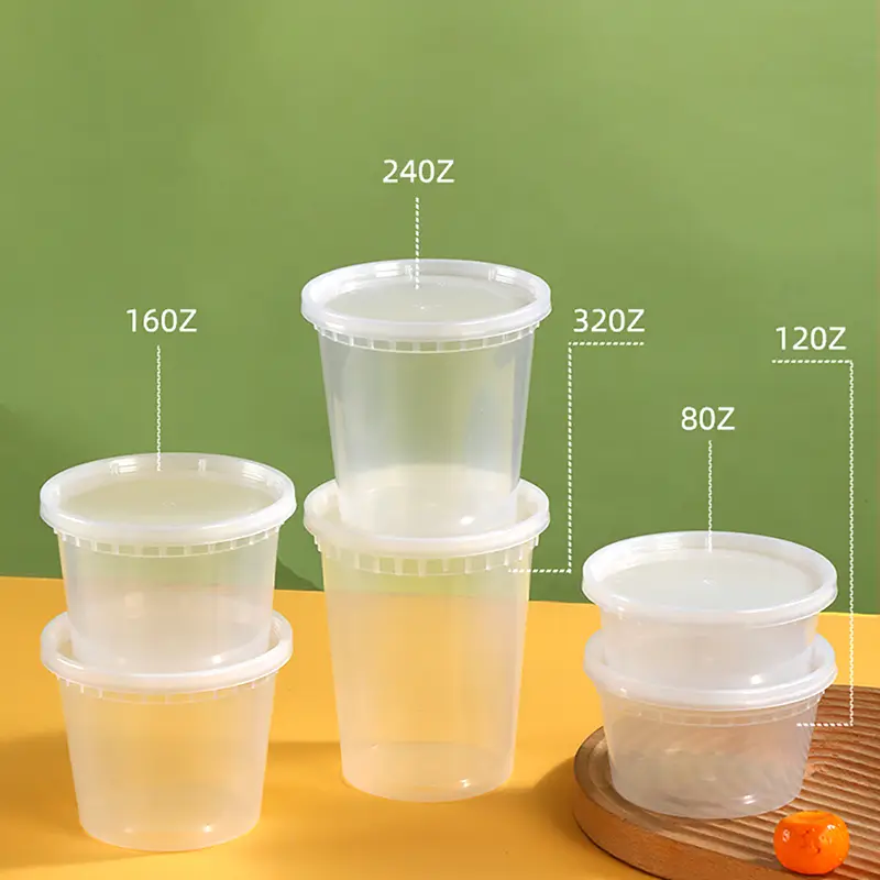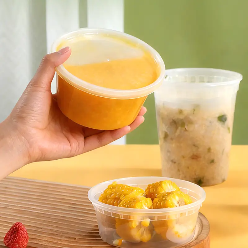 Op zoek naar groothandel 12oz doorzichtige ronde Deli plastic voedselcontainer in China? Ningbo Powerr Plastic Products Co., Ltd is een goede keuze! Onze container is ontworpen voor lichte maaltijden, desserts, snacks, noten en soepen. Het klikdeksel zorgt voor een strakke, lekvrije afdichting, is bestand tegen schokken en voorkomt morsen tijdens de bezorging. Gemaakt van voedselveilig materiaal, geschikt voor koude en warme gerechten, ondersteunt koeling, verwarming in de magnetron (deksel eraf) en reiniging in de vaatwasser. Het stapelbare ontwerp met rechte zijkanten bespaart tot 25% opslagruimte, ideaal voor kleine keukens. Het klikdeksel sluit sneller af, voor efficiënte werkzaamheden tijdens de spitsuren. Heldere lichamen presenteren voedsel om aankopen te stimuleren, terwijl bedrukte stijlen de merkidentiteit voor cafés en familiemaaltijdpakketten versterken.