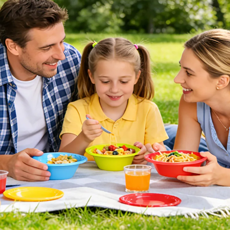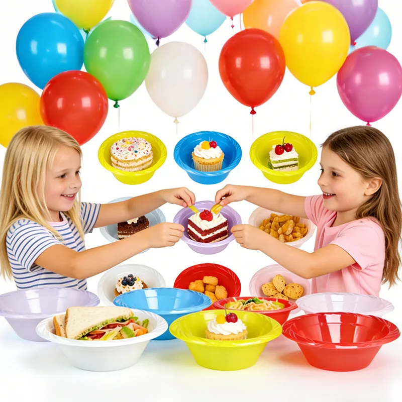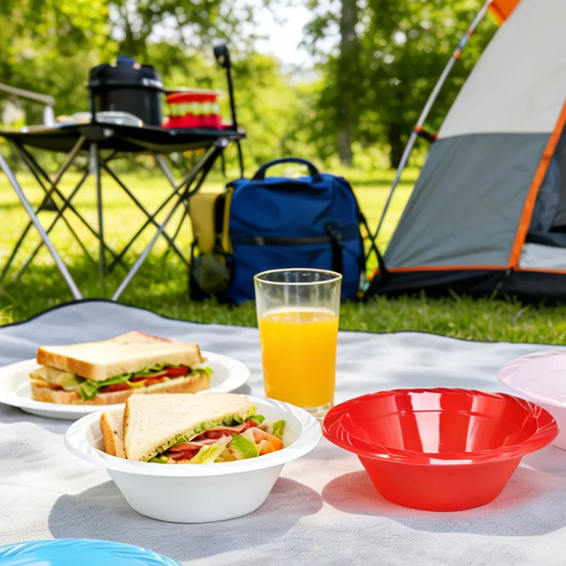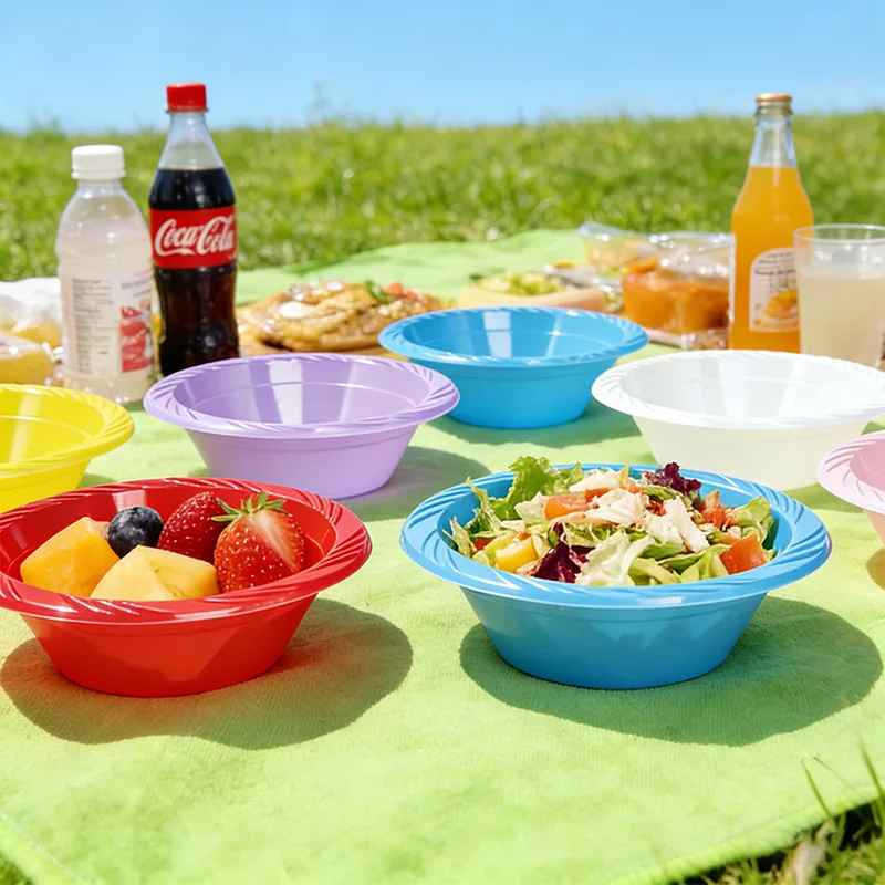 De 12oz wegwerp plastic feestkom is gemaakt van veilig en geurloos voedselveilig plastic en zorgt voor een veilige en geruststellende ervaring bij het gebruik ervan. Er is plaats voor zowel gekoeld fruit als warme, lichte maaltijden, geschikt voor verschillende soorten voedsel. De kleuropties zijn divers en omvatten rood, blauw, paars, wit, geel, roze en vele andere kleurenschema's. Wanneer het op een picknickkleed wordt geplaatst, lijkt het op een kleurenpalet en heeft het een ingebouwd fotofiltereffect. De uitstraling is zowel stijlvol als functioneel.