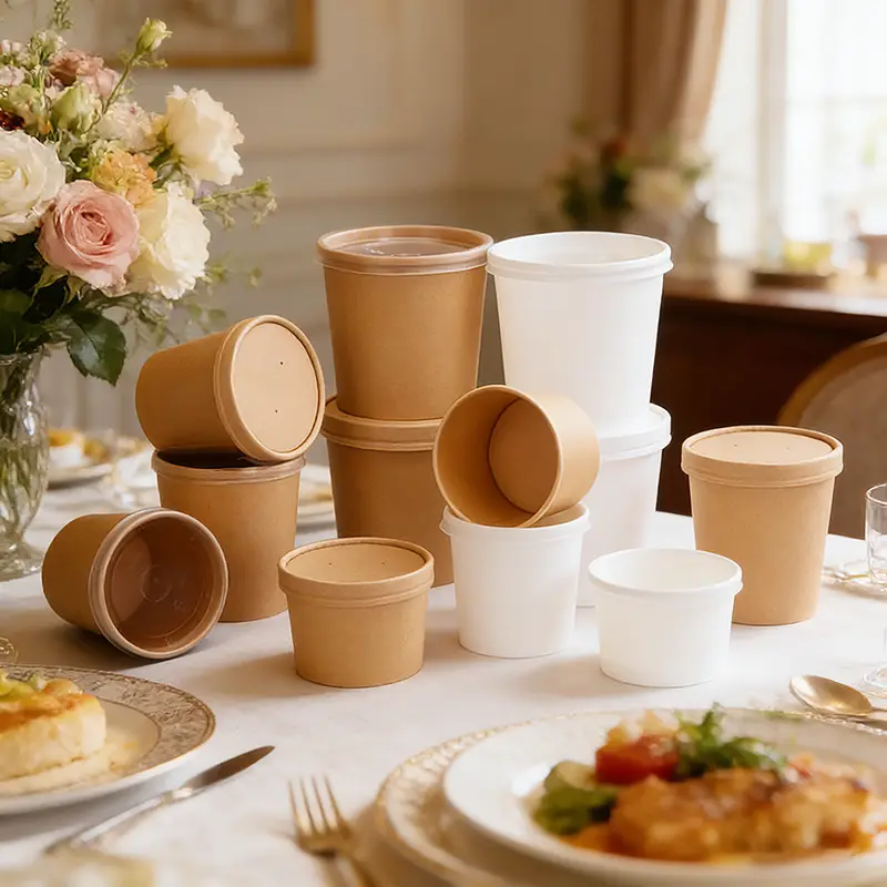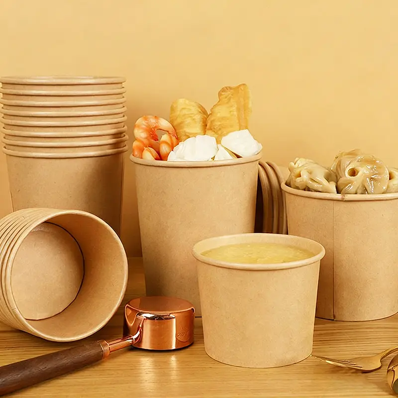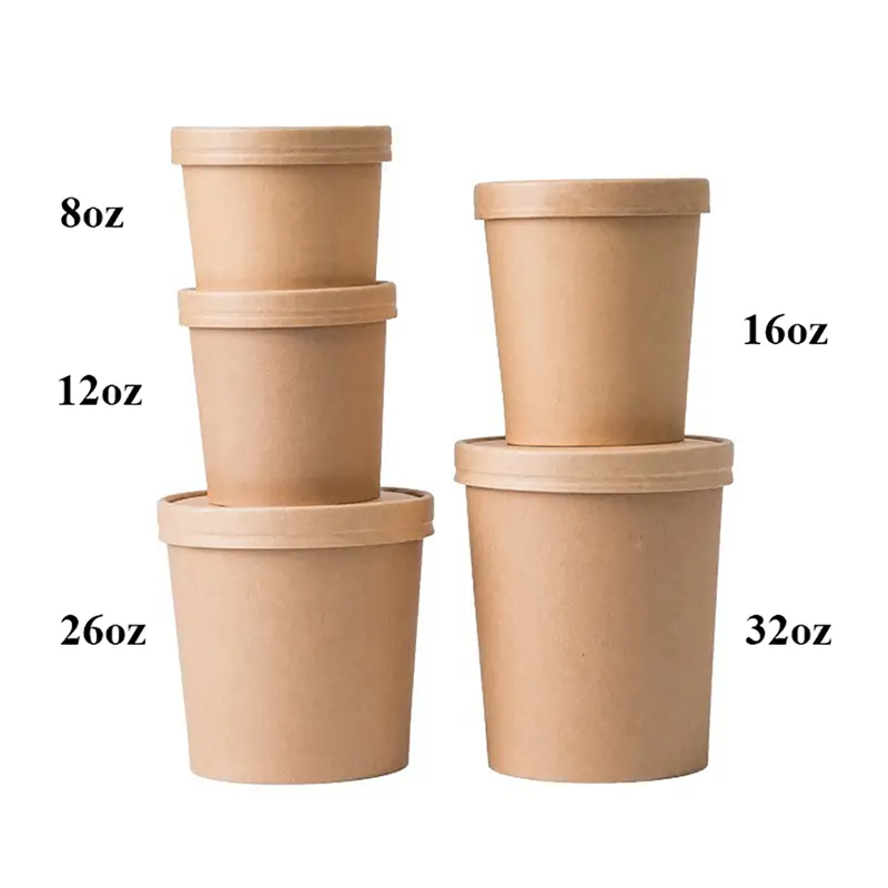 Veilig, praktisch, aantrekkelijk en milieuvriendelijk: onze 32oz Kraft Paper Soup Paper Bowl is de perfecte verpakkingsoplossing voor warme gerechten, koude gerechten, snacks en afhaalservices met merknamen.
