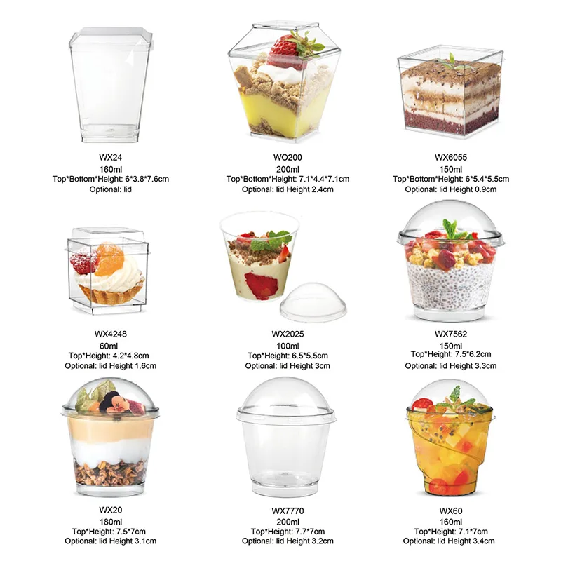 De stijlen zijn divers en de compatibiliteit is sterk, geschikt voor verschillende desserts en gelegenheden. De artikelen met deksel zijn geschikt voor het vervoeren en vervoeren van voedsel. De stijl met kleine capaciteit kan worden gebruikt als proefbeker. De stijl met grote capaciteit kan voldoen aan de behoeften van bijeenkomsten.