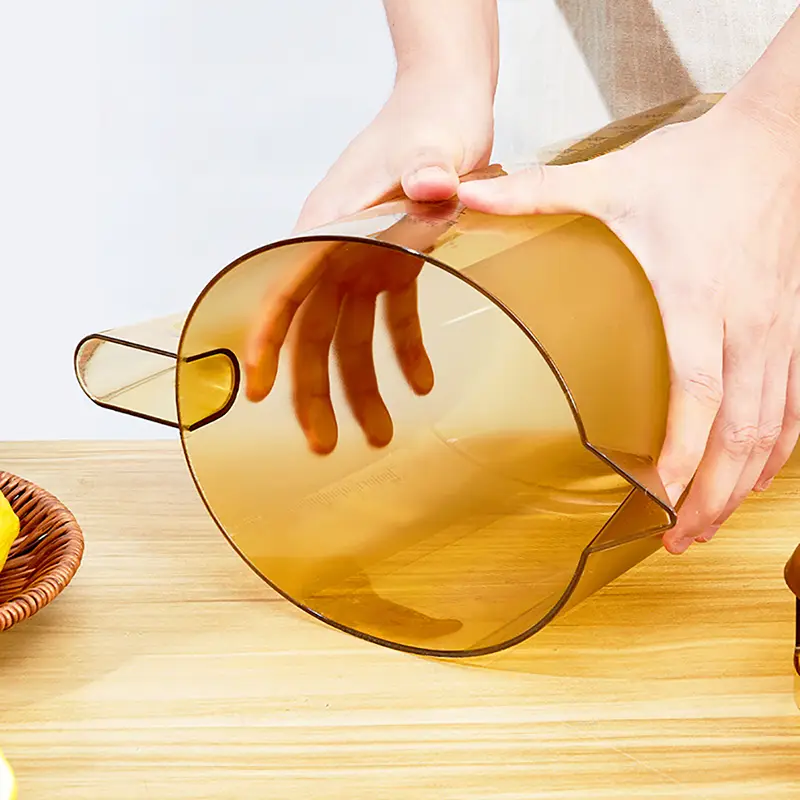 Welkom bij contact met Ningbo Powerr Plastic Products Co., Ltd voor de offerte van Advanced Tawny of Clear Plastic Cold Water Pitcher. Je kunt kiezen uit 2400ml, 3500ml en 5000ml. Nauwkeurige weegschalen stellen gebruikers in staat de dosering beter te controleren. Er zijn twee kleuren beschikbaar. En beide kunnen voorkomen dat direct zonlicht op de drank schijnt en het bederf ervan vertragen. De uitloop is van het puntige type, waardoor het water soepel en snel naar buiten stroomt. Het scherpgerande handvat zorgt voor een stabiele en stevige grip. Het hoofdgedeelte heeft de kenmerken dat het schokbestendig en duurzaam is.
